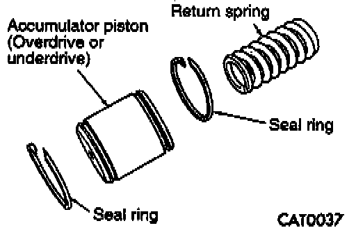 8. Remove return spring and two seal rings from the overdrive and underdrive clutch accumulator pistons.