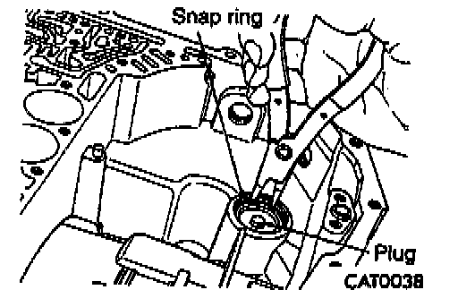9. Remove the snap ring holding the low/reverse accumulator plug (cover) in place.