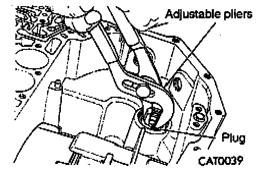 10. Using adjustable plies, pull out low/reverse accumulator plug.