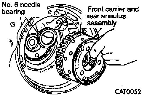 24. Twist and pull to remove front carrier and rear annulus assembly. Remove No. 6 needle bearing.