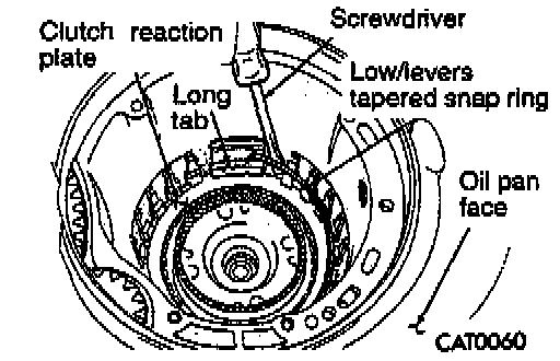 34. Using a screwdriver, pry out the low/reverse reaction plate flat snap ring.