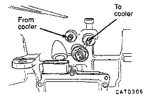 1. Disconnect the From cooler line at the transmission and place a collecting container under the disconnected line.
