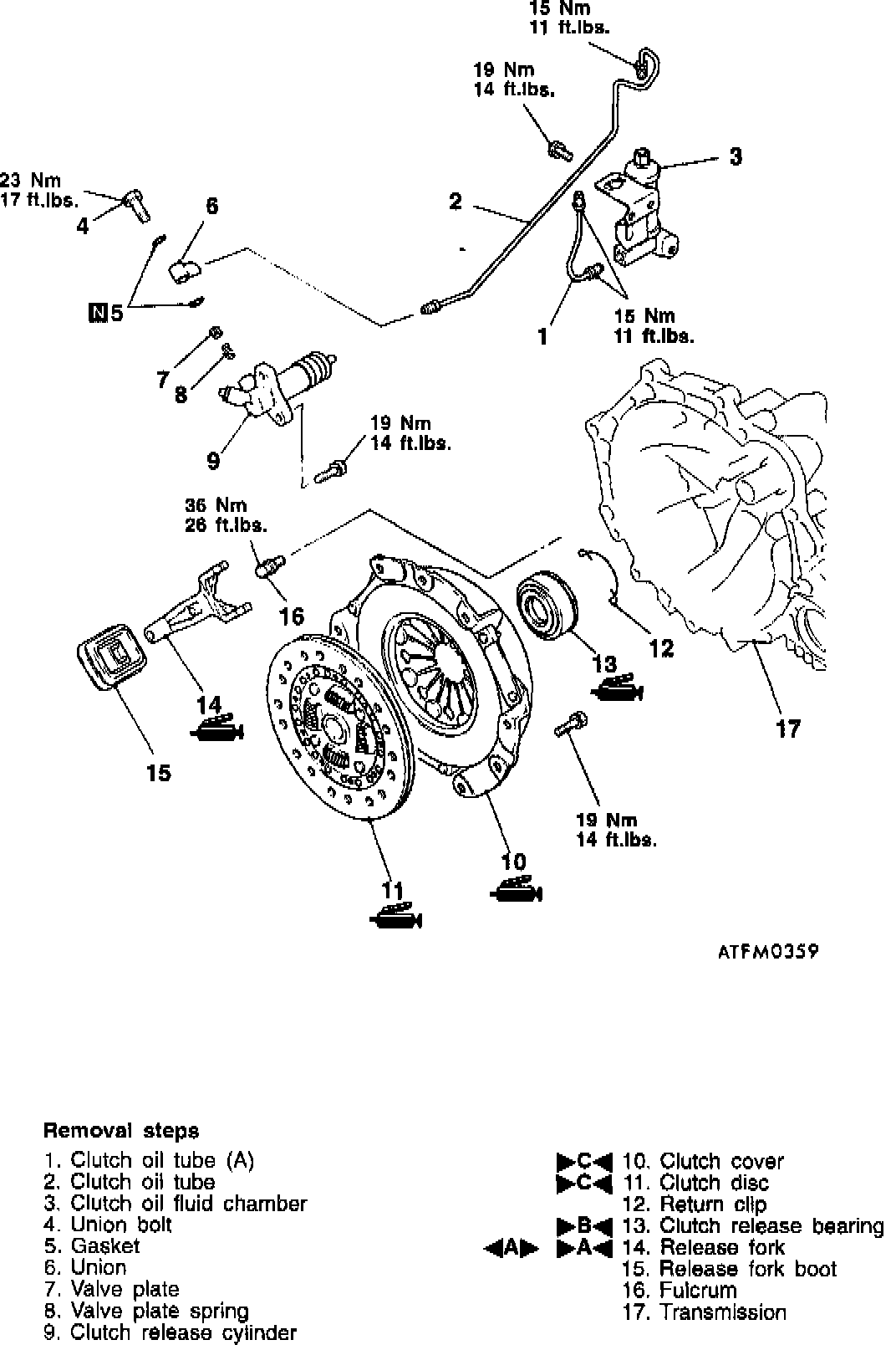 >C< Clutch Disc/Clutch Cover Assembly Installation