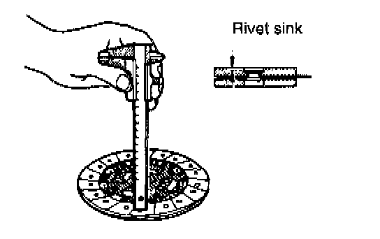 - Measure the rivet sink and replace the clutch disc if it is out of specification.