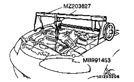 Set the special tool to the vehicle to support the engine assembly.
