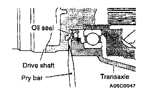 1. Insert a pry bar between the transaxle case and the drive shaft to remove the drive shaft.