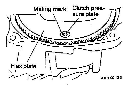 3. Chalk mating marks on the flex plate and clutch pressure plate for easier installation.