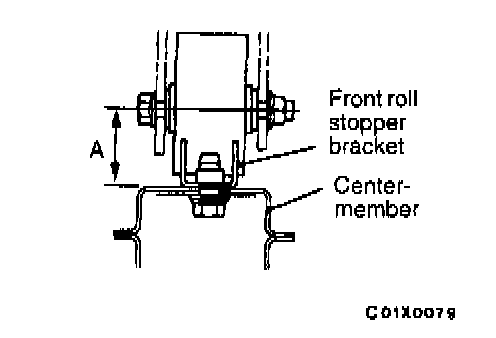 If the dimension shown in the illustration is outside the standard value when the weight of the engine is on the body, replace the front roll stopper bracket assembly.