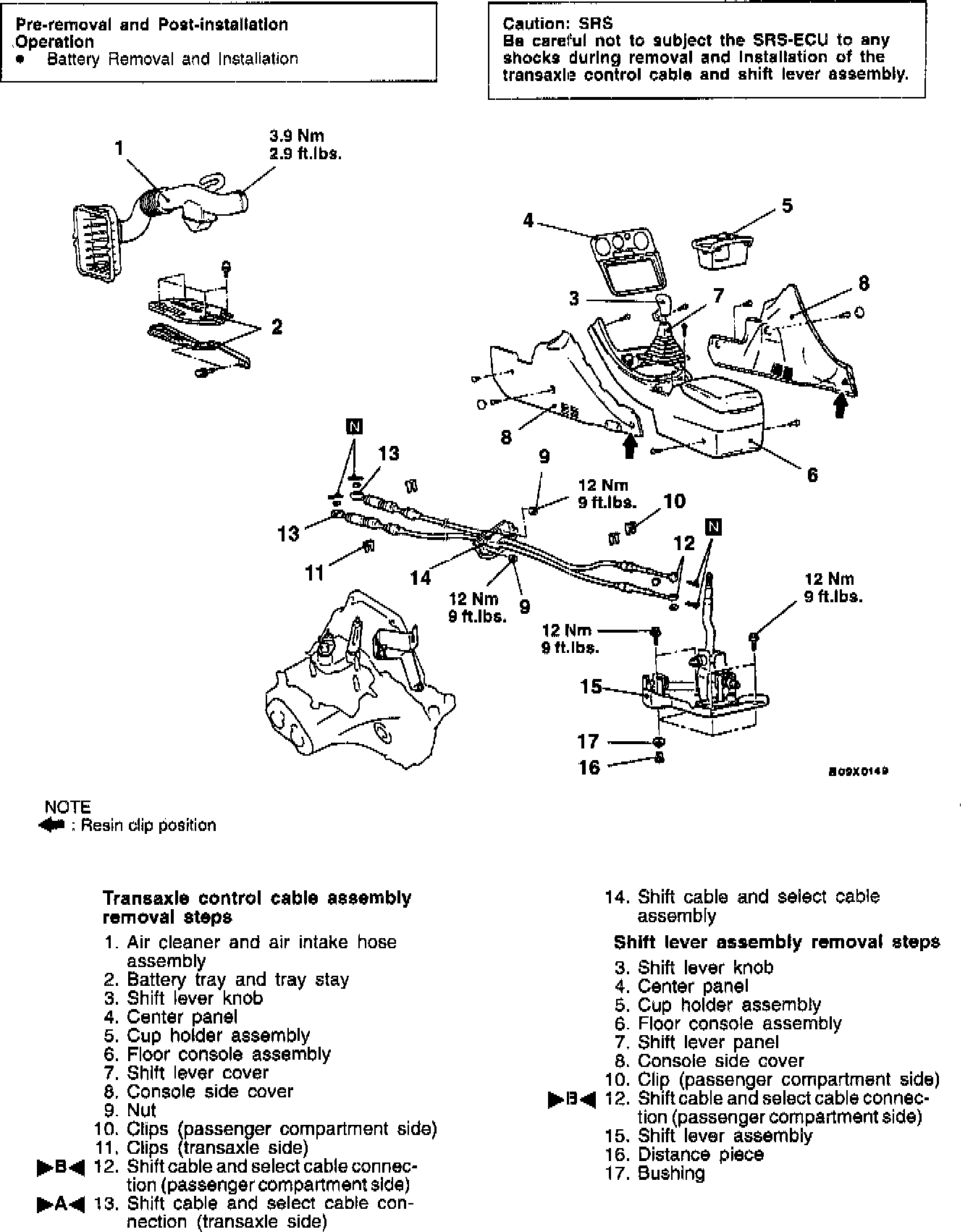 >B< Shift Cable And Select Cable Connection (Passenger Compartment Side)