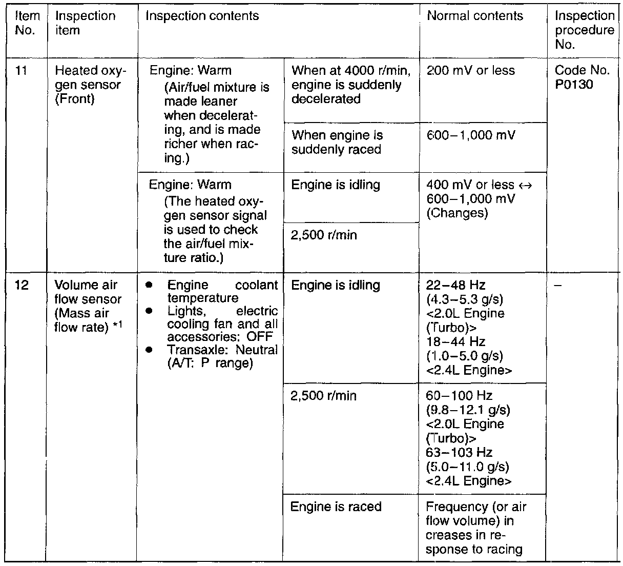 *1: In a new vehicle [driven approximately 500 km (300 mile) or less] the volume air flow sensor output frequency is sometimes 10 % higher than the standard frequency.