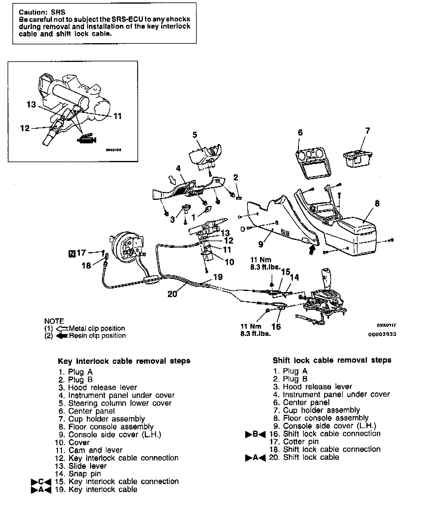 >C< Key Interlock Cable (Selector Lever Side) Installation