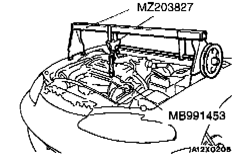 Set the special tool to the vehicle to support the engine assembly.