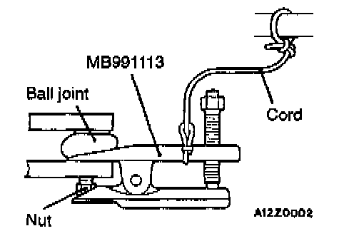1. Using the special tool, loosen the tie rod end mounting nut. Only loosen the nut; do not remove it from the ball joint.