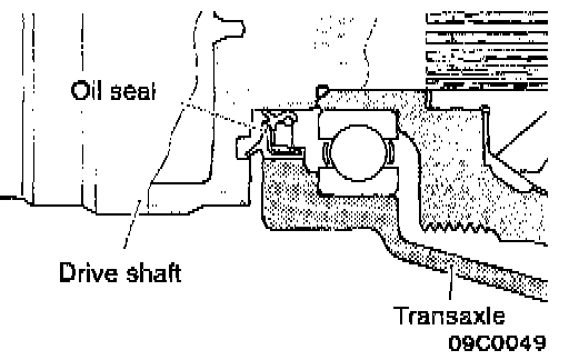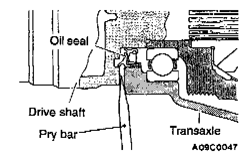 1. Insert a pry bar between the transaxle case and the drive shaft to remove the drive shaft.