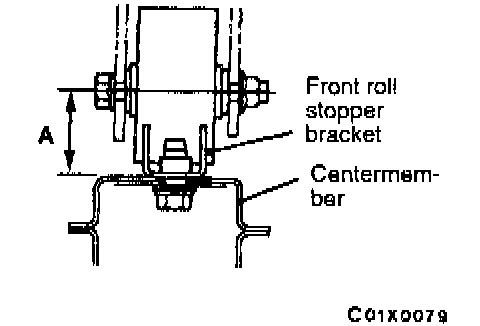 If the dimension shown in the illustration is outside the standard value when the weight of the engine is on the body, replace the front roll stopper bracket assembly.