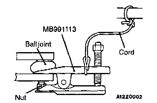 NOTE: Using the special tool, loosen the tie rod end mounting nut. Only loosen the nut; do not remove it from the ball joint.