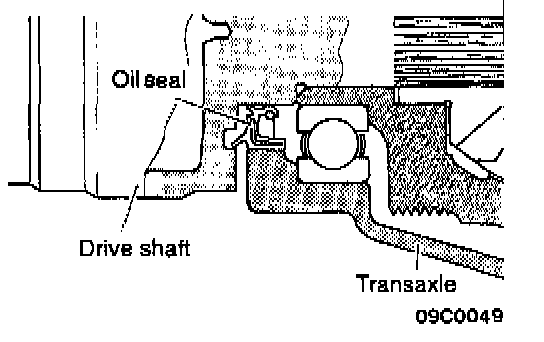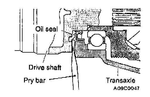 1. Insert a pry bar between the transaxle case and the drive shaft to remove the drive shaft.