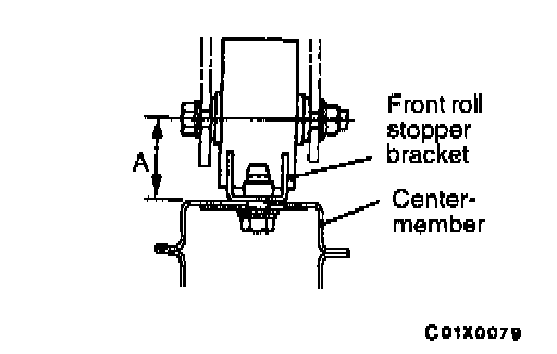 If the dimension shown in the illustration is outside the standard value when the weight of the engine is on the body, replace the front roll stopper bracket assembly.