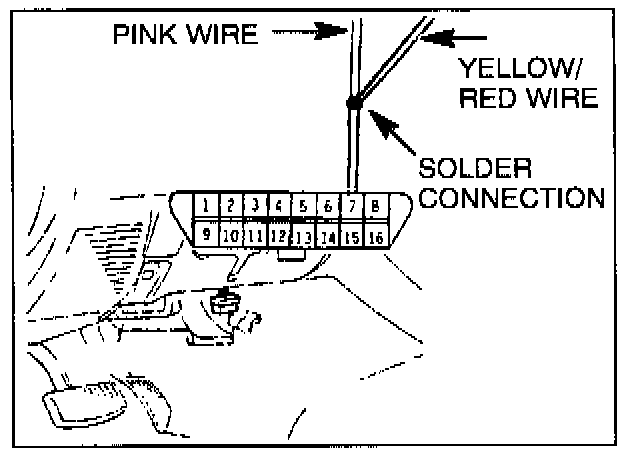 2. Cut the yellow/red wire at pin 8 as close as possible to the data link connector. Then remove about 1/2 inch of insulation from the wire.