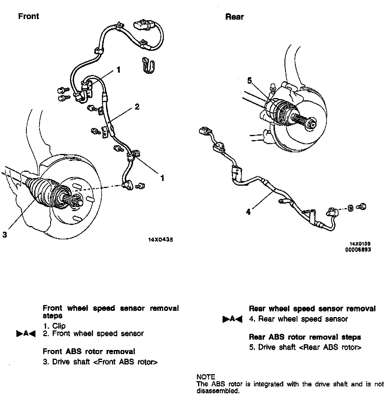 >A< Front Wheel Speed Sensor/Rear Wheel Speed Sensor Installation.