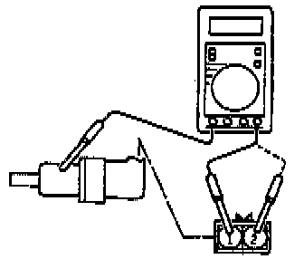 1) Remove all connections from the wheel speed sensor, and then measure the resistance between terminals (1) and (2) and the body of the wheel speed sensor.