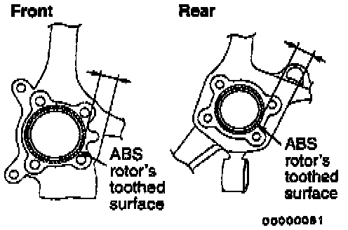 Check whether the ABS rotor teeth are broken or deformed. Replace the ABS rotor if the teeth are damaged or deformed.