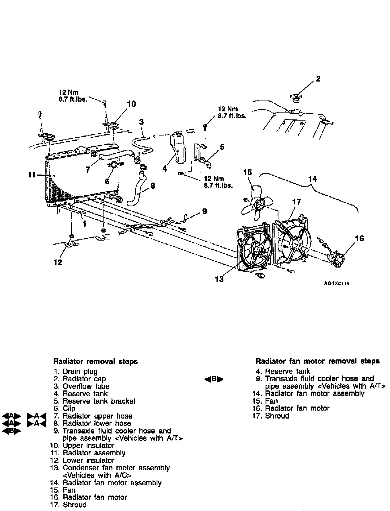 [A] Radiator Upper Hose/Radiator Lower Hose Disconnection.