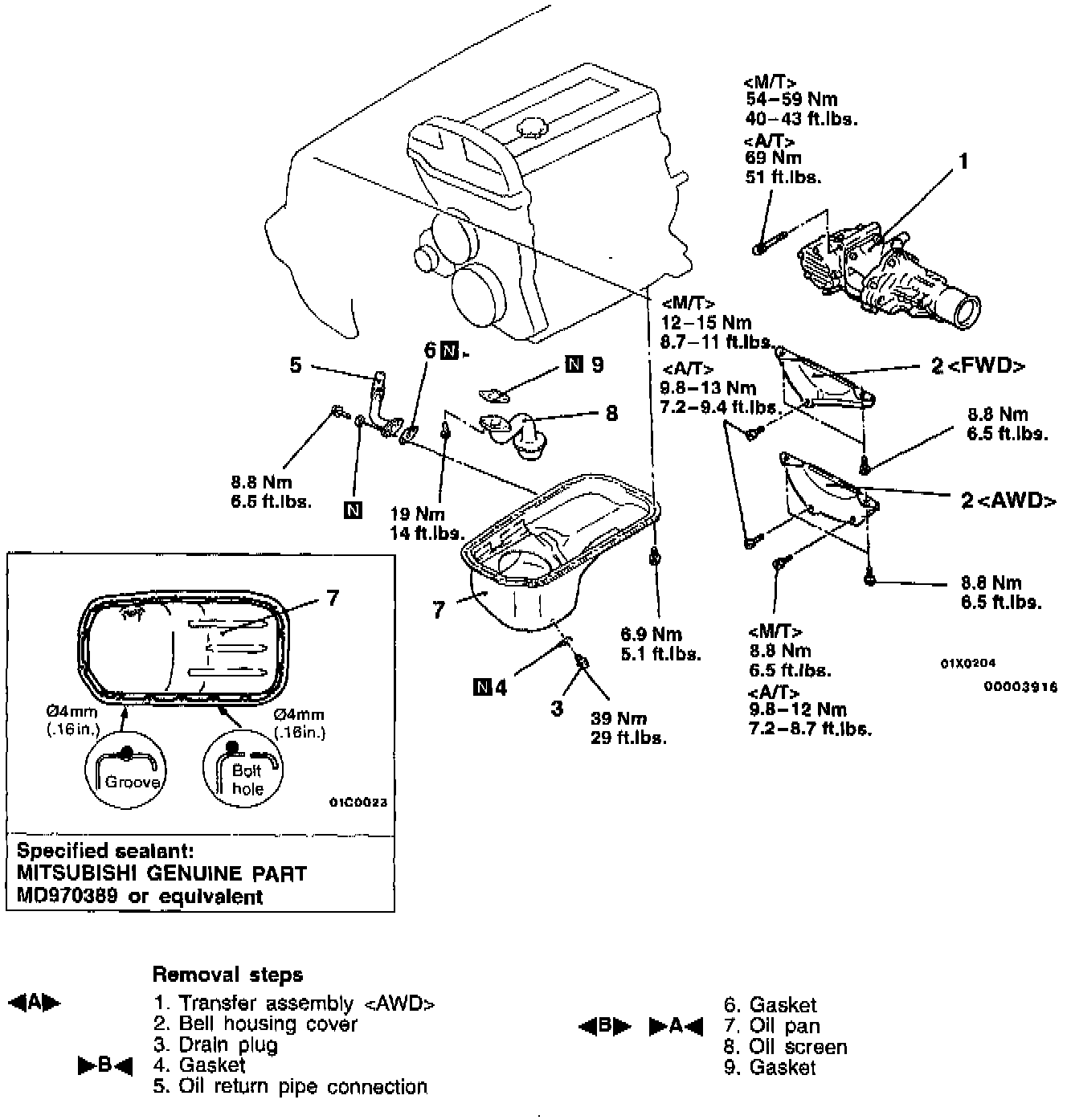 ]A[ Oil pan installation.
