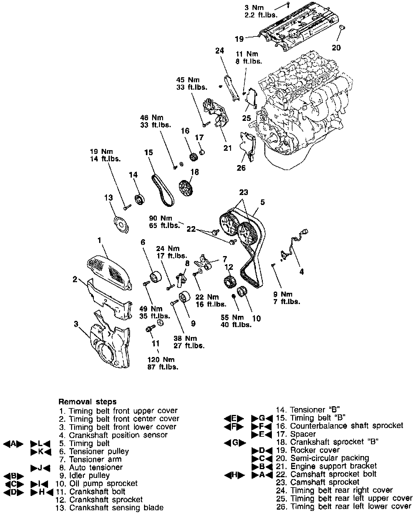 [E] Timing Belt "B" Removal.