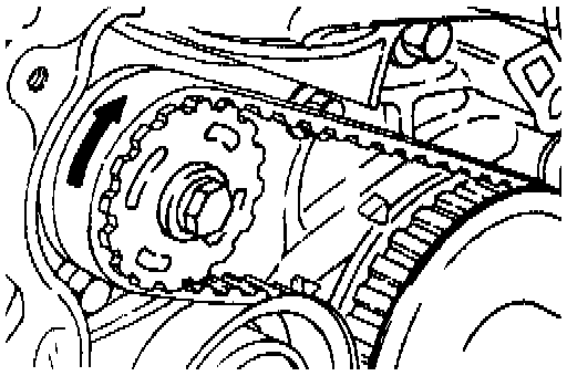 1. Make a mark on the back of the timing belt indicating the direction of rotation so it may be reassembled in the same direction if it is to be reused.