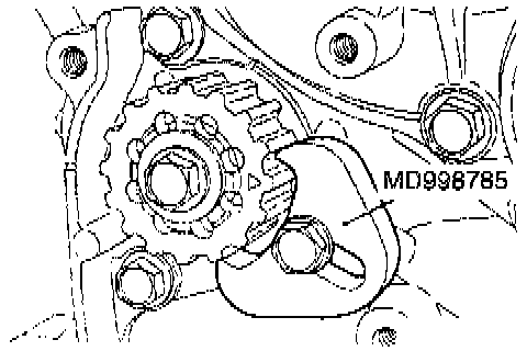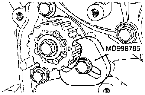NOTE: Step (4) is performed to ensure that the oil pump sprocket is correctly positioned with reference to the counterbalance shafts.