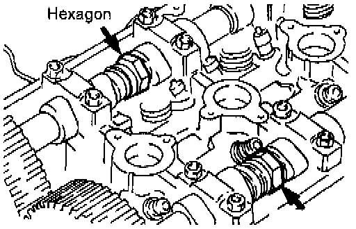 1. Using a wrench, hold the camshaft at its hexagon (between the No 2 and No. 3 journals) and tighten the bolt to the specification Caution Locking the camshaft sprocket with a tool damages the sprocket.