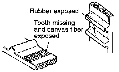 6. Abnormal wear of belt sides. The sides are normal if they are sharp as if cut by a knife.