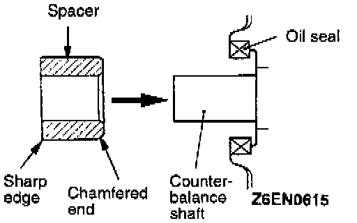 1. Install the spacer with the chamfered end facing toward the oil seal.