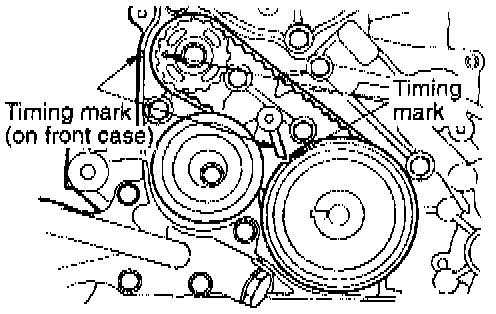 5. Check to ensure that timing marks on sprockets and front case are in alignment.