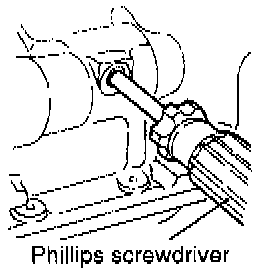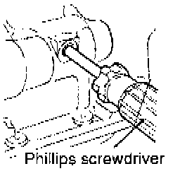 1. Insert a Phillips screwdriver [shank diameter 8 mm (0.31 inch) shaft] through the plug hole on the left side of the cylinder block to block the left counterbalance shaft.