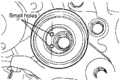 1. Install the tensioner pulley in such direction that its two small holes are arranged vertically.
