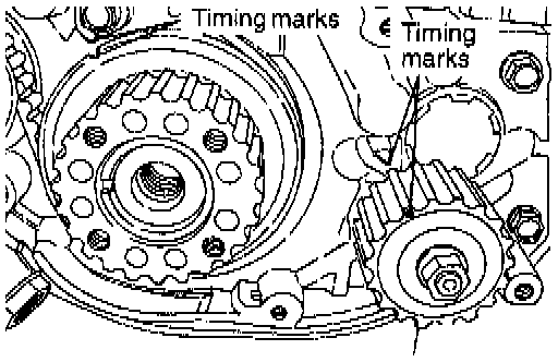 3. Align the oil pump sprocket timing marks (Engine with counterbalance shafts).