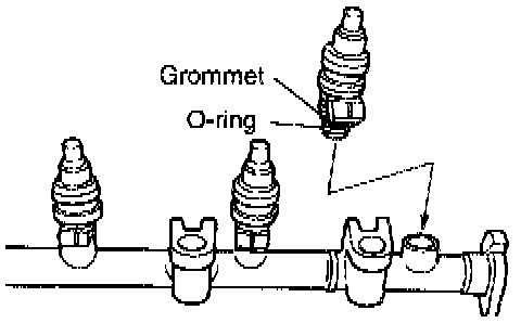 1. Before installing an injector the rubber O-ring must be lubricated with a drop of clean engine oil to aid in installation.