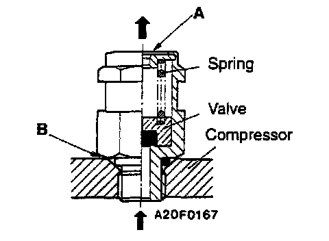 The high-pressure relief valve is a safety feature which releases part of the refrigerant inside the system into the atmosphere when the high, pressure level exceeds 3,740 kPa (532 psi) during air conditioning operation.