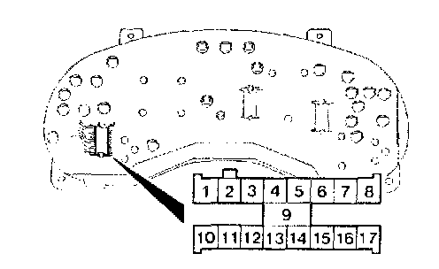 Check the continuity between terminals (10) and (16). If there is continuity, replace the auto-cruise control indicator.