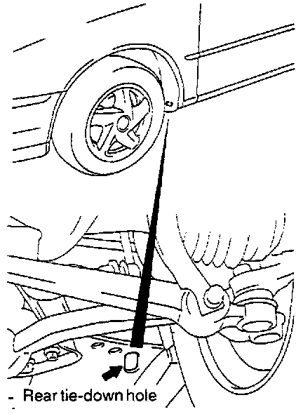 4. Attach a chain or wire to the rear tie-down holes. Secure the end of the wire or chain.