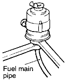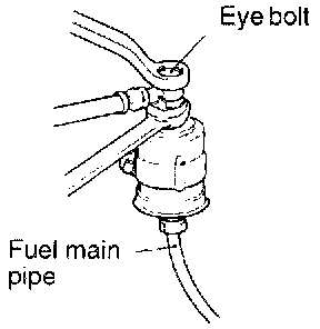Hold the fuel filter with a spanner and loosen the flare nut. Then disconnect the fuel main pipe.