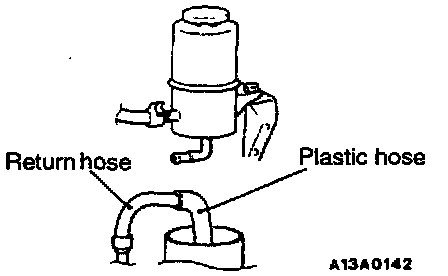 1. Raise the front wheels on a jack, and then support them with rigid racks.2. Disconnect the return hose connection.