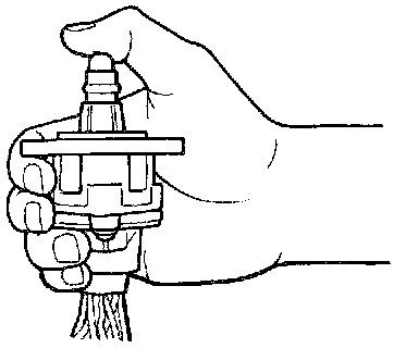 5. With the idle air control motor as shown in the illustration, connect the negative (-) terminal of the power supply to each clip as described in the following steps and check whether or not a vibrating feeling (a feeling of very slight vibration of the stepper motor) is generated as a result of the activation of the stepper motor.