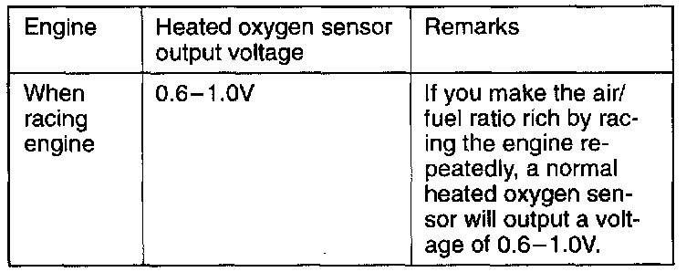 7. While repeatedly racing the engine, measure the heated oxygen sensor output voltage.