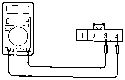 2. Make sure that there is continuity [11 - 18 ohms at 20°C (68°F)] between terminal 3 and terminal 4 on the heated oxygen sensor connector.