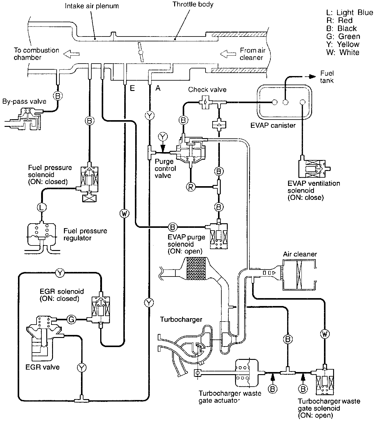 Using the VACUUM HOSE ROUTING as a guide, check that the vacuum hoses are correctly connected, and that there are no bends or damage to the hoses.