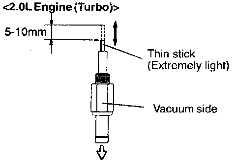 1. Hold the PCV valve with the vacuum side facing down. Using light pressure depress the PCV valve spring with the thin stick 5-10 mm. Release pressure on the stick to see if the PCV valve spring will lift the stick to its original position.