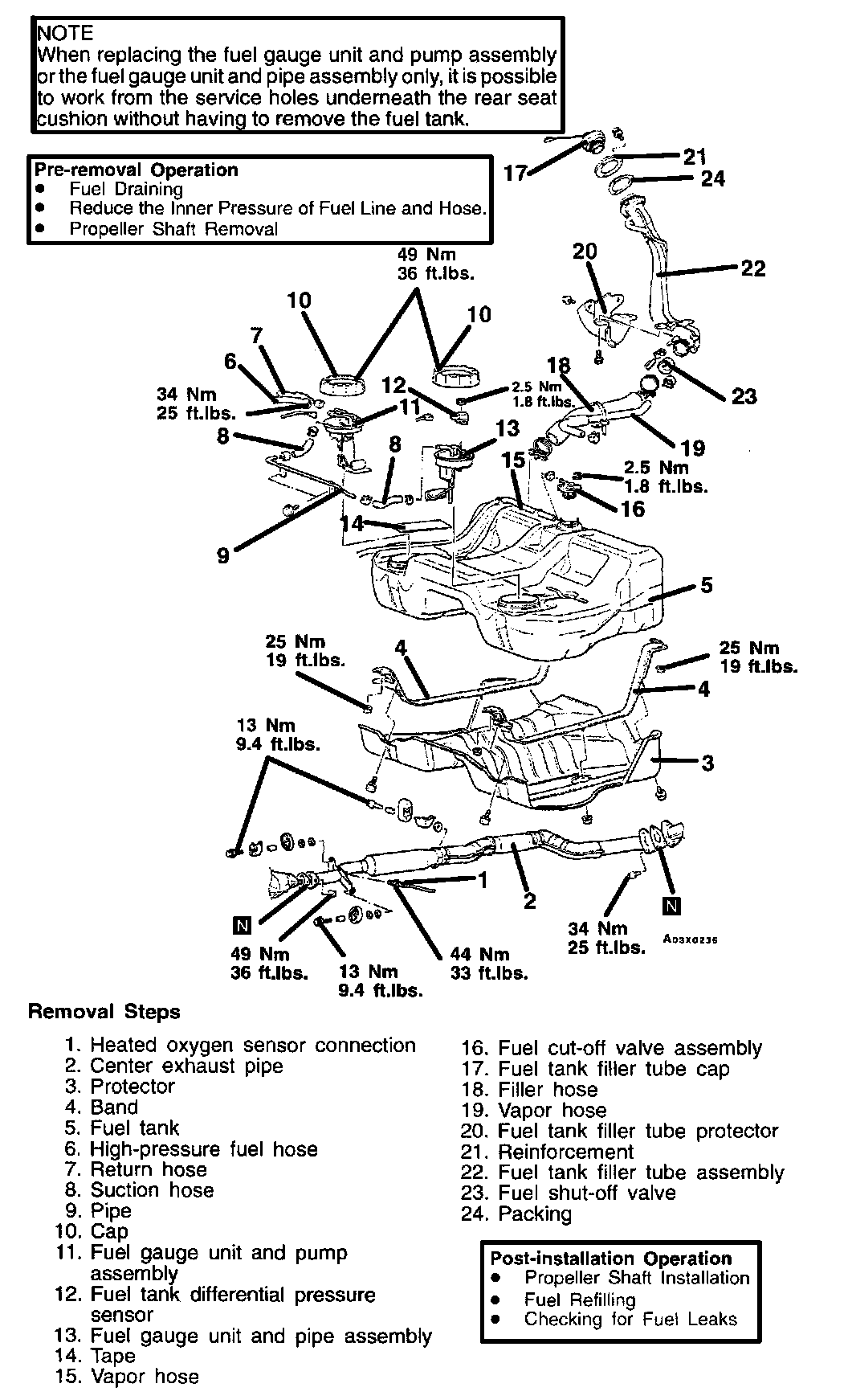 FUEL GAUGE UNIT AND PUMP ASSEMBLY REPLACEMENT